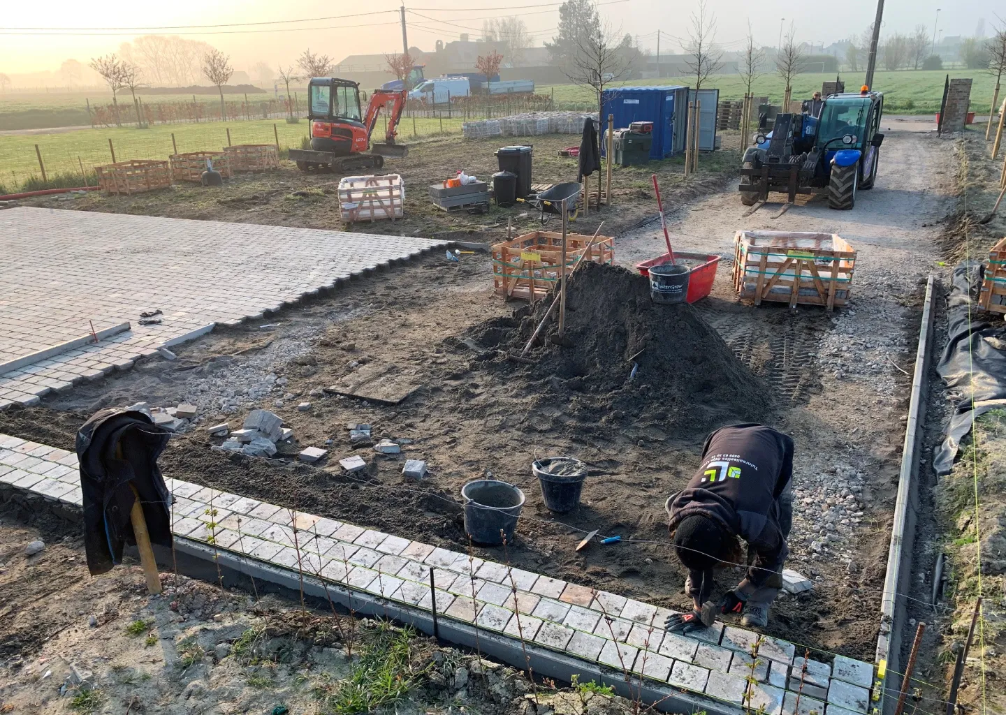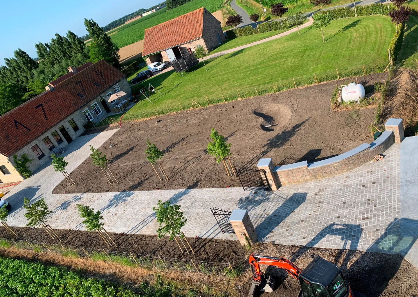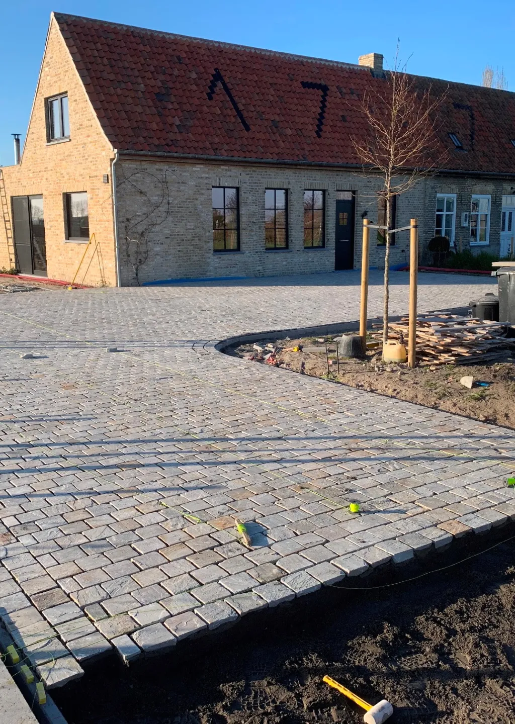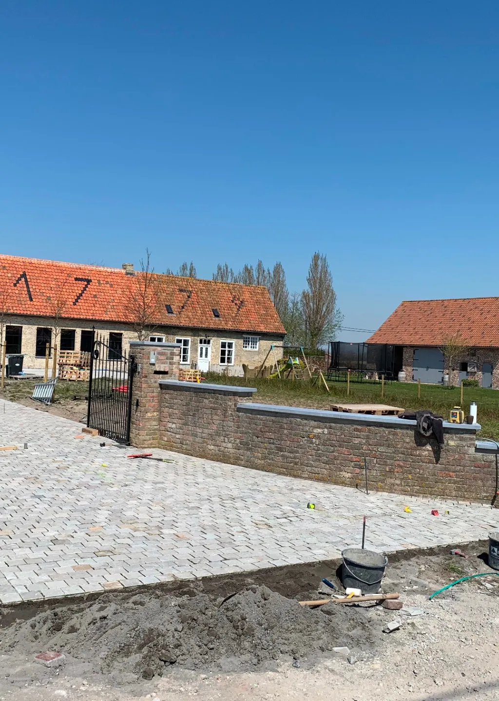 Bij het ontwerpen van deze tuin hebben we rekening gehouden met de omgeving en de stijl van de woning. De oprijlaan van platines zorgt niet alleen voor een mooie uitstraling, maar is ook praktisch en duurzaam. De platines zijn getrommeld, wat zorgt voor een strakke afwerking en een moderne uitstraling.